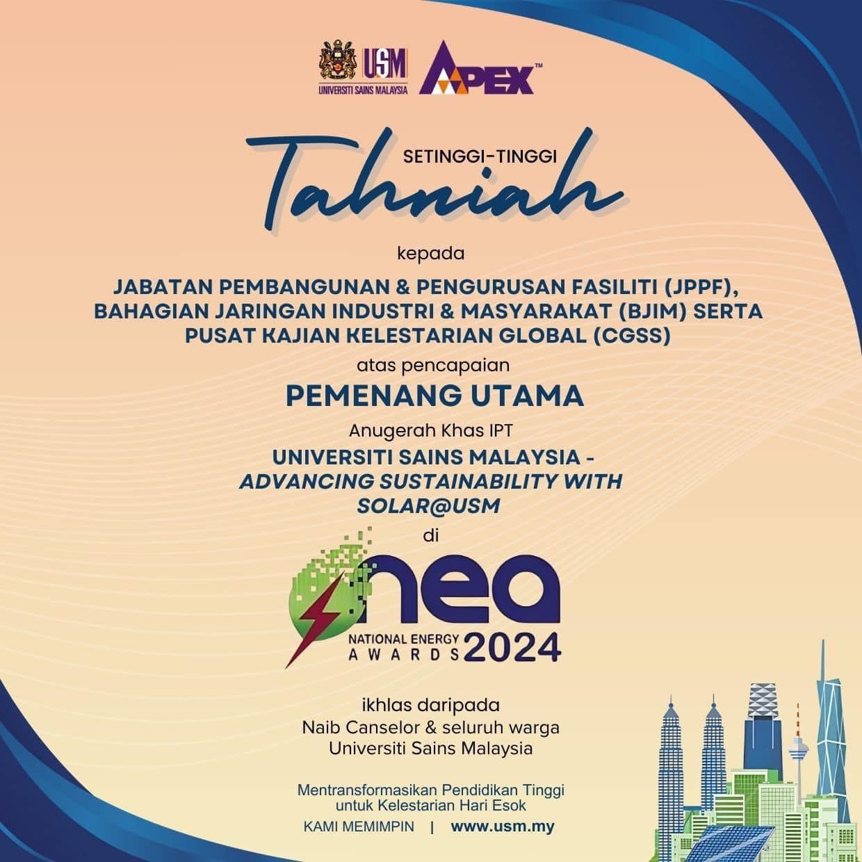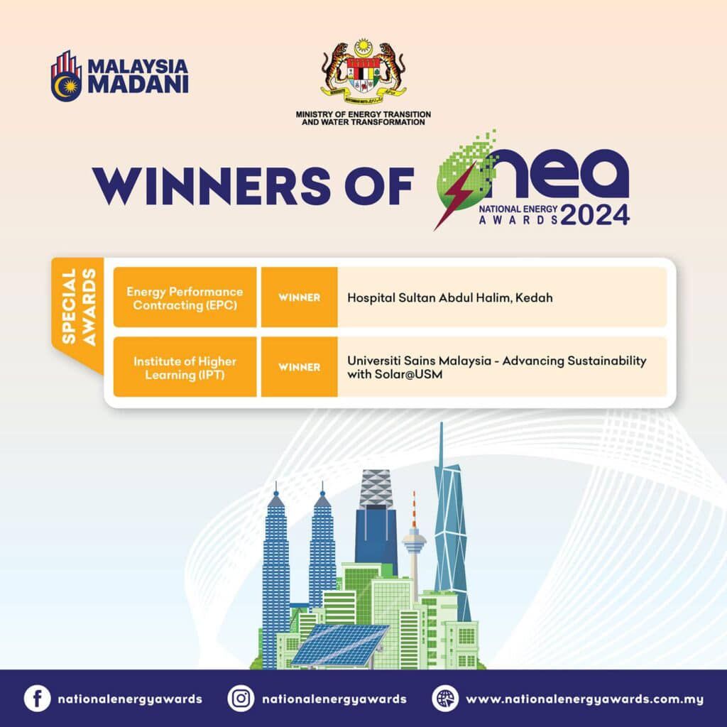 USM MUNCUL PEMENANG UTAMA ANUGERAH KHAS IPT DI NATIONAL ENERGY AWARDS 2024
